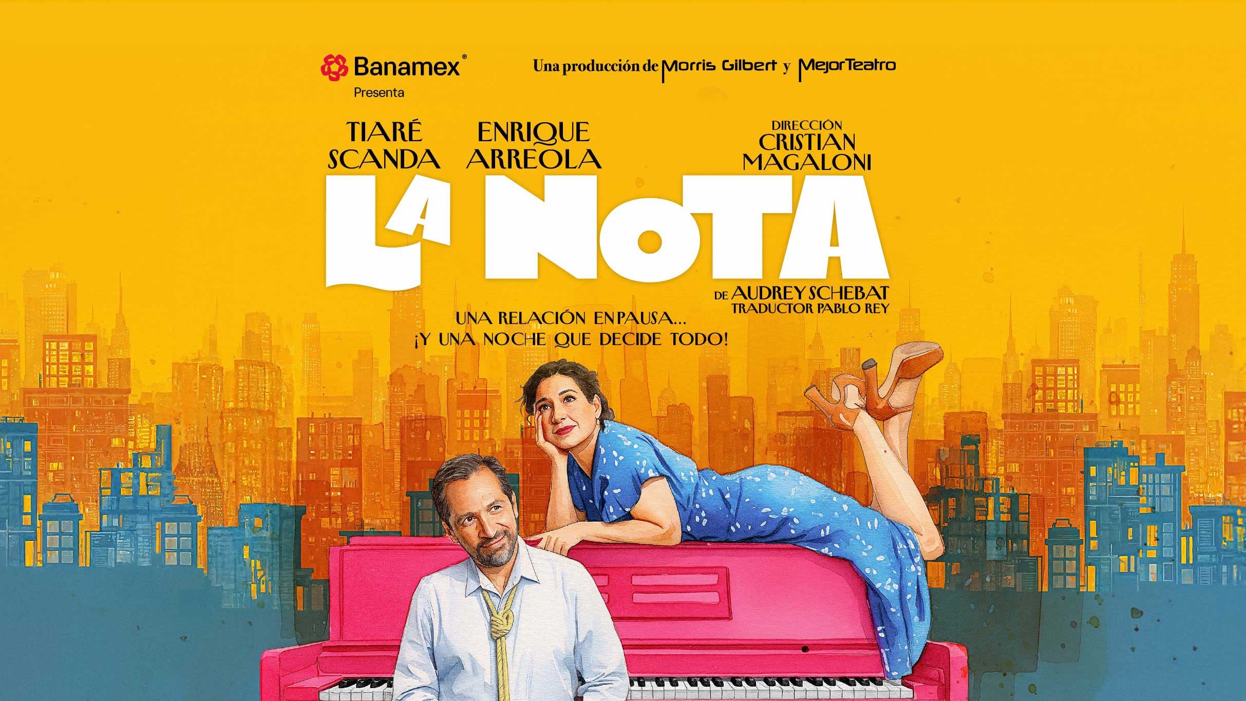 Julián, un psicoanalista en plena crisis, decide terminar con todo... hasta que su esposa Magda llega antes de tiempo y lo encuentra con la soga al cuello. A partir de ahí, se desata una divertida guerra de pareja llena de sarcasmo, verdades y ternura. La Nota, comedia de Audrey Schebat, retrata con humor y lucidez lo complejo del amor cuando se dicen las cosas que nunca se dijeron. Una historia que nos recuerda que, incluso al borde del abismo, siempre hay lugar para reír... y para volver a empezar.